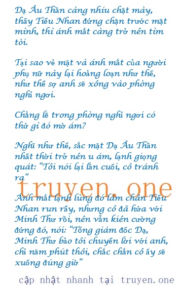 Tất nhiên Tiểu Nhan vẫn chưa quên lời căn dặn của Hàn Minh Thư lúc nấy, nhưng đứng trước khí thế mạnh mẽ của Dạ Âu Thần, cô vẫn yếu ớt và chột dạ, nên cô vô thức liếc nhìn phòng nghỉ ngơi.