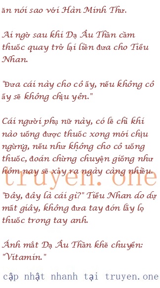 Tiểu Nhan hít vào một hơi lạnh, ý của Dạ Âu Thần là bảo cô đưa cho Hàn Minh Thư vitamin thay thuốc tránh thai.