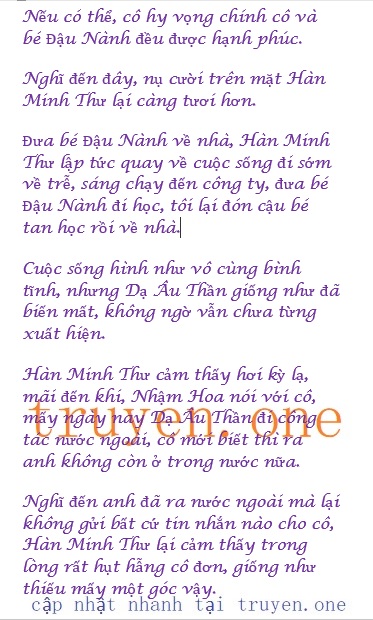 Nghe câu hỏi, Hàn Minh Thư mới lấy lại tinh thần, nhìn bé Đậu Nành đang ngồi bên cạnh dựa sát vào cô, nhớ đến sau này cậu bé sẽ sống cùng cô, nếu Dạ Âu Thần đột nhiên đến thăm, đến lúc đó cô phải đối phó thế nào đây?