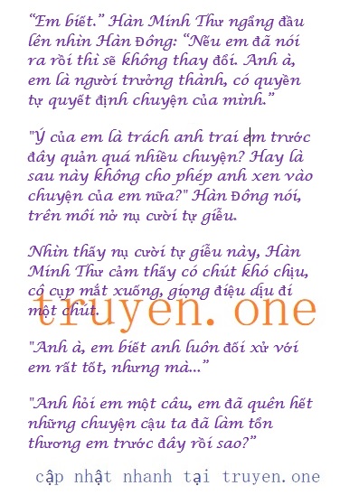 Loại phản ứng này dường như nằm trong dự đoán của Hàn Minh Thư, cô khẽ cúi đầu cắn môi dưới, một lúc sau mới thấp giọng hỏi: “Anh, anh biết ý của em là gì không?”