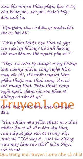 “Hai người vẫn còn trẻ, sau này sẽ lại có con. Sau khi bỏ đứa bé này thì về nhà nghỉ ngơi cho khoẻ, biết đâu một thời gian nữa lại mang thai, đừng quá để ý.”