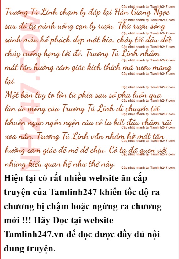 Trương Tú Linh cùng Hàn Giang Ngọc cụng ly rượu mạnh vào nhau, ngửa cổ dốc ngược thứ rượu đắng chát vào miệng.