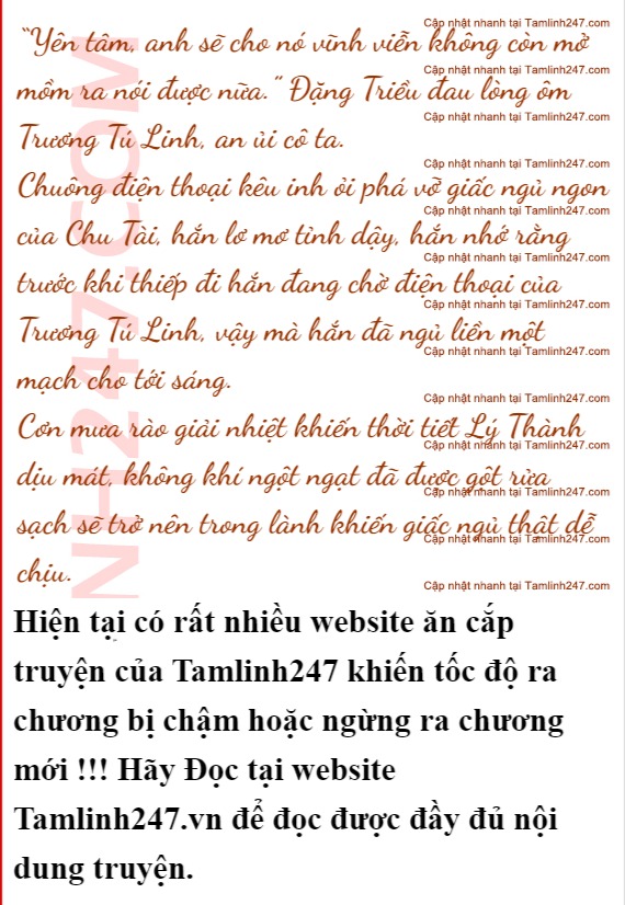 Sau màn vật lộn Trường Tú Linh cũng cảm thấy thỏa mãn, cảm xúc tức tối ban nãy bay biến hết, thay vào đó là sự bình tĩnh suy tính. Đôi tay đặt trên eo của Đặng Triều vẫn không buông lỏng, mắt cô ta nhìn thẳng lên trần nhà, khác với mọi khi, mỗi khi quan hệ trong tình trạng tỉnh táo hoàn toàn, khi xong việc Trương Tú Linh thường rúc vào lòng Đặng Triều, vuốt ve hắn và khen ngợi khả năng làm tình của hắn, khiến lòng kiêu hãnh đàn ông của Đặng Triều được đưa lên cao chót vót.