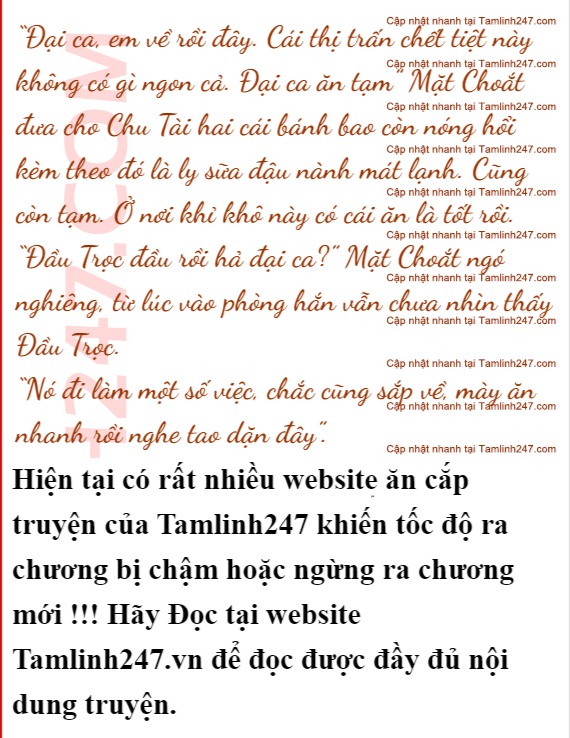 Mặt Choắt đã đi mua chút đồ ăn, còn Đầu Trọc đang chuẩn bị một số thứ. Đêm qua tuy bọn hắn cùng nhau tới đây nhưng đề phòng bị phát hiện, Chu Tài đã để cho Mặt Choắt và Đầu Trọc tới trước, hai tên đó thuê một phòng riêng biệt, sau đó mấy tiếng sau Chu Tài mới vào thị trấn, hắn làm như vô tình thuê đúng phong cạnh phòng của Mặt Choắt và Đầu Trọc.