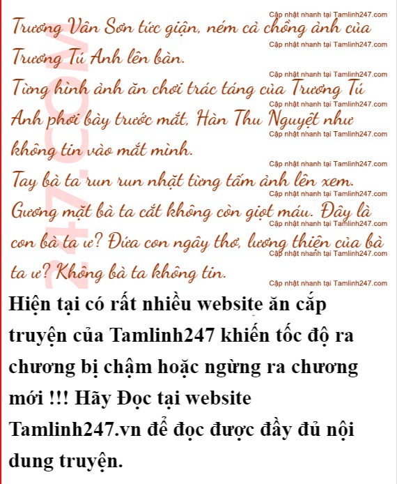 Khác hẳn với giọng điệu nhẹ nhàng chiều chuộng trước đây, ngay khi bắt máy Trương Vân Sơn đã lạnh lùng ra lệnh cho Trương Tú Linh, Linh cảm có chuyện không hay Trương Tú Linh cố gắng dùng giọng điệu nũng nịu như mọi khi, chẳng phải cô ta đã nói với Hàn Thu Nguyệt là cô ta đi nước ngoài mấy ngày sao.