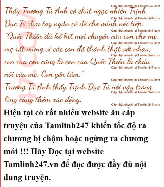 Nghĩ tới ba mẹ đẻ của mình làng Trương Tú Anh không khỏi chua xót, từ khi cô bị nạn, qua lời kể của Lăng Quốc Thiên cô biết được họ chỉ tới thăm cô một lần vào đêm cô phẫu thuật. Nếu thực sự quan tâm thì tự khắc sẽ có thời gian, còn nếu không quan tâm thì không thiếu gì lý do để không tới.