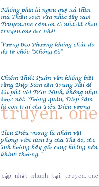 Chiêm Thiết Quân báo cáo: “Tướng quân, Diệp Sâm – con trai của Diệp Tiêu Diêu, đến Trung Hải, buổi chiều đã có mặt tại Bích Hải Vân Thiên, mời một số nhân vật tai to mặt lớn ở Trung Hải, đồng thời mời cả ngài!”