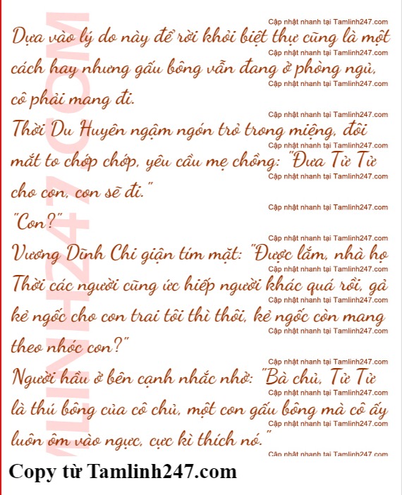 Chỉ cần không có anh ở đây thì sẽ không có người quấy rầy cô, ngoại trừ thời gian một ngày ba bữa xuất hiện ở phòng ăn, thời gian còn lại Thời Du Huyên đều trốn trong phòng dù làm gì cũng không có người làm phiền.