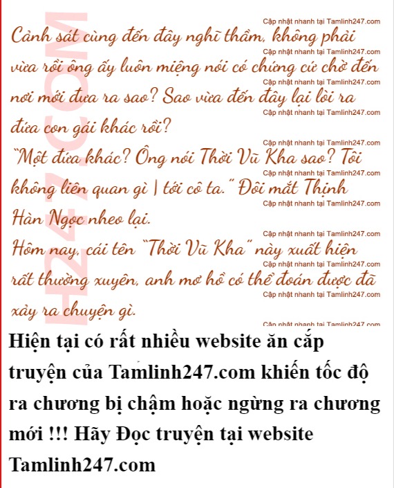 Thịnh Hàn Ngọc đi xuống dưới, Thời Vũ Thành lập tức đi lên bóp cổ anh, đỏ bừng mắt mắng nhiếc: “Súc sinh, cậu hại một đứa con gái của tôi còn chưa đủ, giờ còn muốn hại cả đứa con gái khác của tôi sao? Tôi nói cho cậu biết, đừng có mơ!”