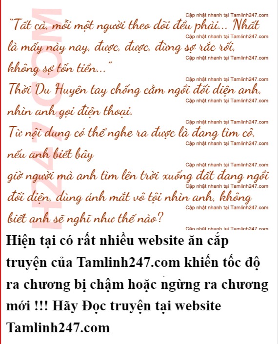 “Thời Du Huyên là vợ trên pháp luật của tôi, tôi phải có trách nhiệm với cô ấy, Giản Di Tâm là người phụ nữ tôi yêu thương, tôi cũng sẽ chịu trách nhiệm với cô ấy. Tôi sẽ xử lý từng chuyện, phải tìm được Thời Du Huyên trước, đảm bảo cô ấy bình an, sắp xếp xong mọi chuyện của cô ấy rồi đi tìm Giản Di Tâm, cho nên vali của Di Tâm tạm thời để cô bảo quản, nếu có gì đó không đúng tôi nhất định sẽ