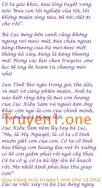 Lục Kiều Sam sẩy thai đúng như những gì cô ta muốn nhưng cô ta chẳng hề vui vẻ chút nào bởi cô ta không khiến cho Hy Nguyệt sẩy thai cùng với mình.