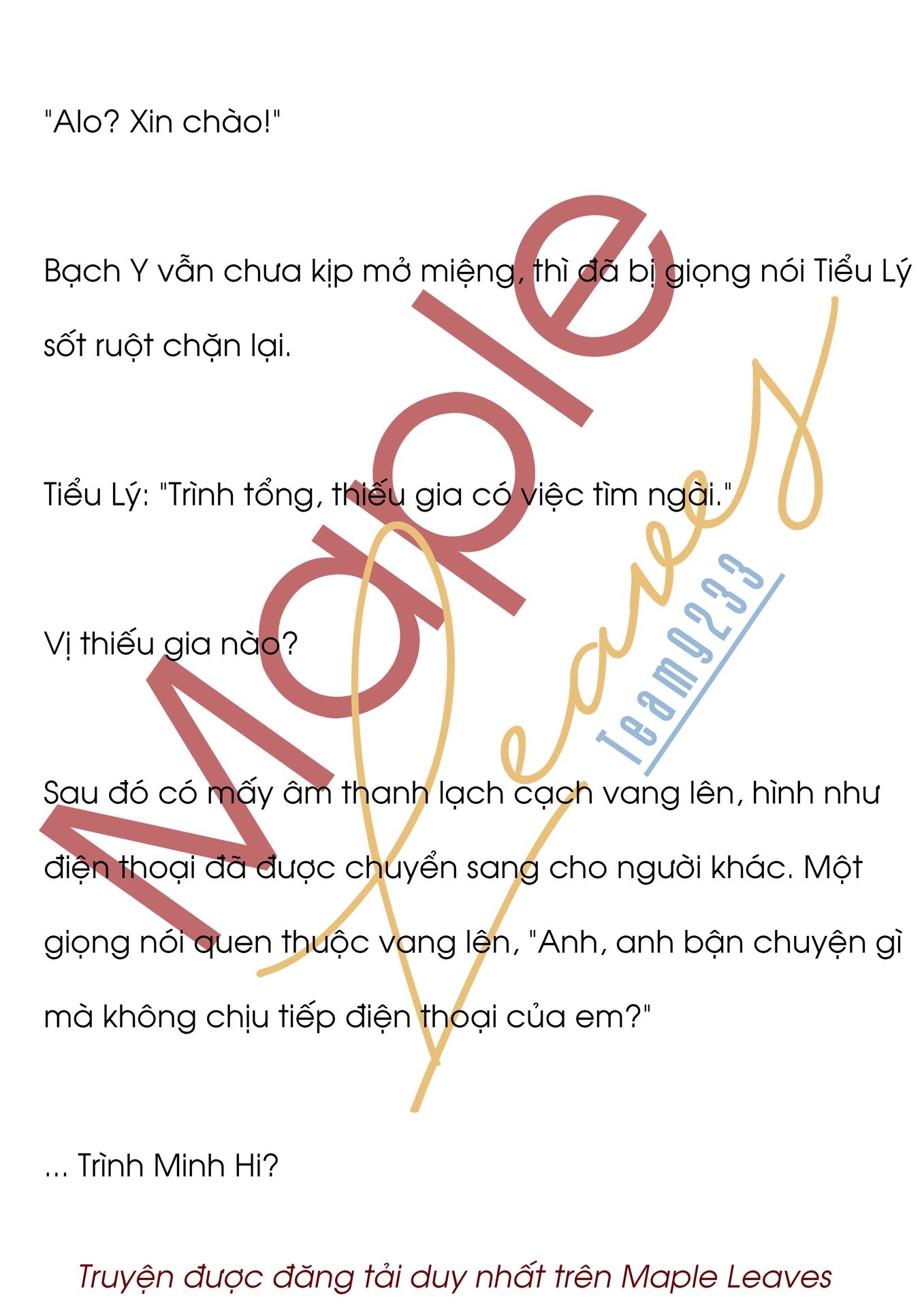 "Anh? Tại sao anh không nói chuyện? Alo?" Đợi vài giây không nghe thấy người ở đầu bên kia trả lời. Trình Minh Hi cố tăng âm lượng lên, có hơi hoài nghi hỏi.