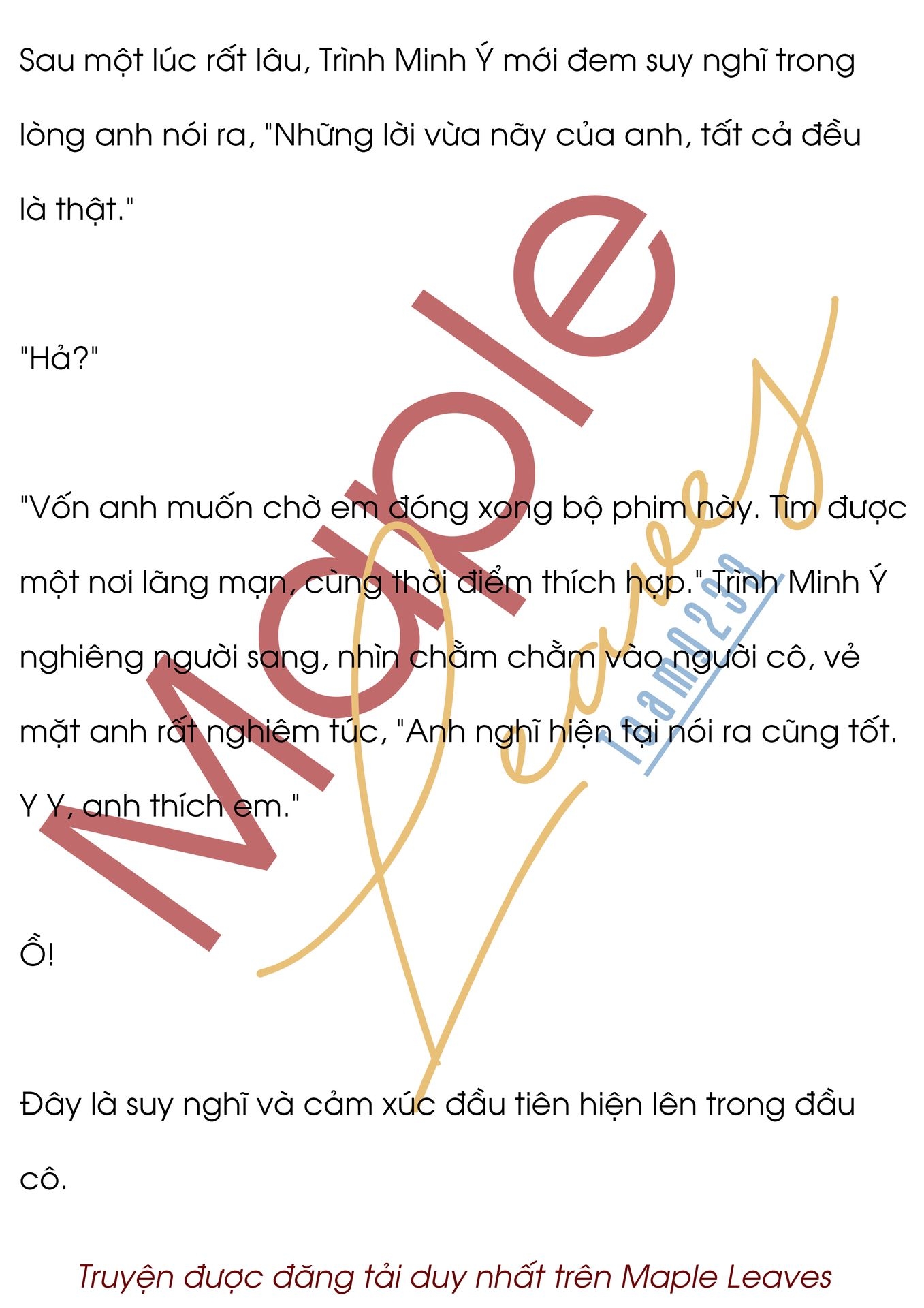 Ánh mắt Trình Minh Ý rất kiên định xen lẫn với sự dịu dàng, "Anh không rõ mấy câu chuyện liên quan tới tình yêu. Nhưng anh biết là anh rất yêu em."