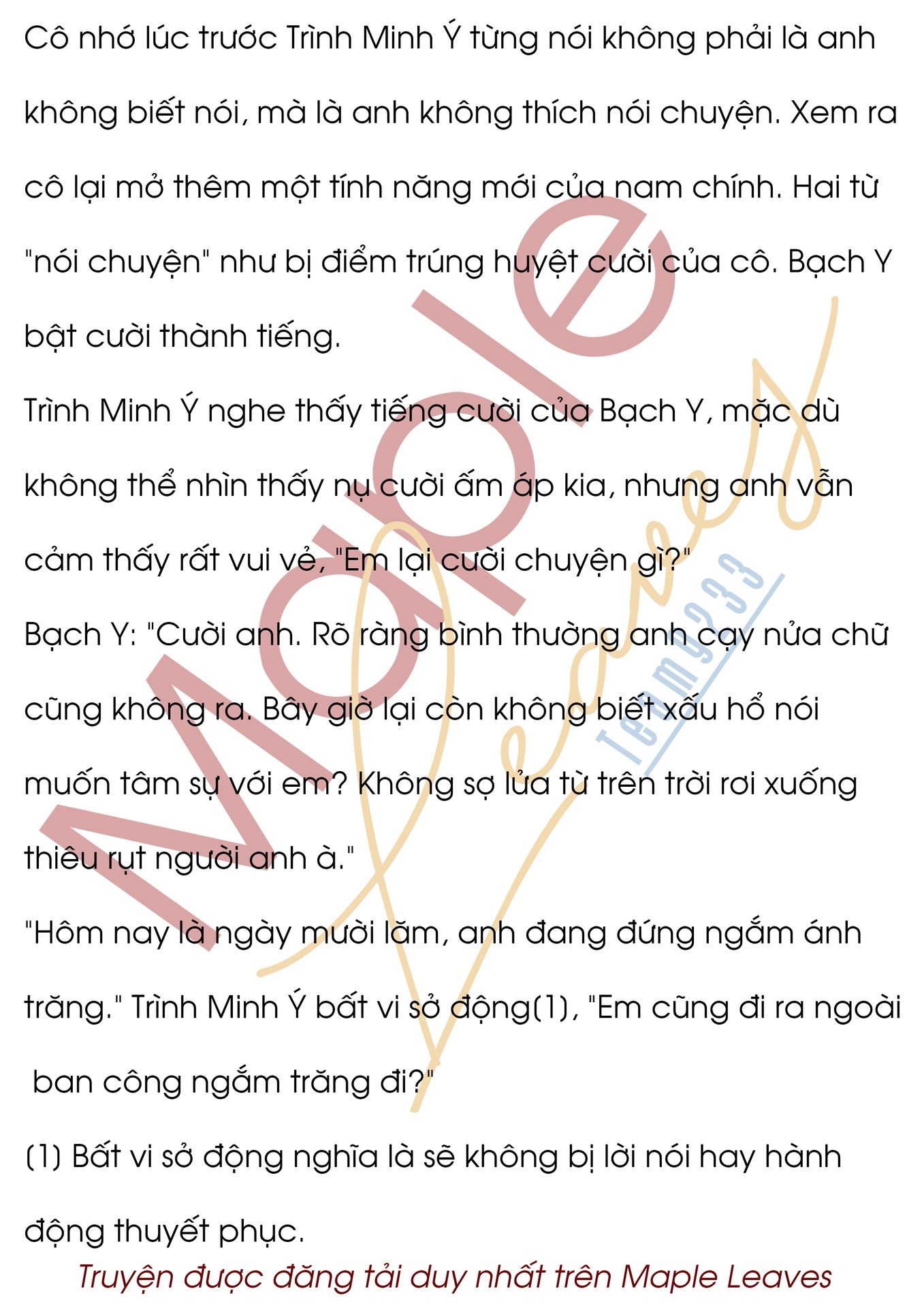 Vì thế Bạch Y nghe theo lời của Trình Minh Ý. Lúc leo lên giường nằm ngủ thì cô vẫn cầm theo điện thoại. Từ trong điện thoại truyền ra một giọng hát trầm nhưng nghe rất ấm. Có thể Trình Minh Ý không giỏi nói những lời ngọt ngào. Nhưng cô thấy anh hát rất hay. Những ca từ dịu dàng du dương đó khiến cho lòng Bạch Y cảm thấy rất ấm áp. Và cô ngủ thiếp đi lúc nào cô cũng không biết.