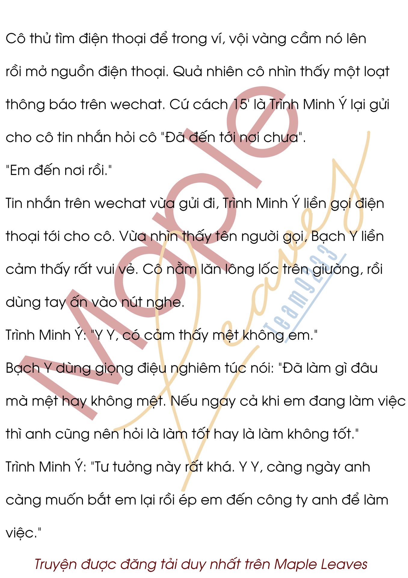 "Ừ, buổi tối hôm nay anh phải tham gia một bữa tiệc xã giao, nên khả năng ngày hôm nay anh sẽ về trễ." Trình Minh Ý nói, "Thôi anh không quấy rầy thời gian nghỉ ngơi của em nữa. Ngày mai em phải đi đến đoàn làm phim từ sớm không?"