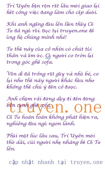 Trì Uyên đang làm việc nghiêm túc ở bên kia, còn cô thì nằm ngửa ngủ ở bên này.