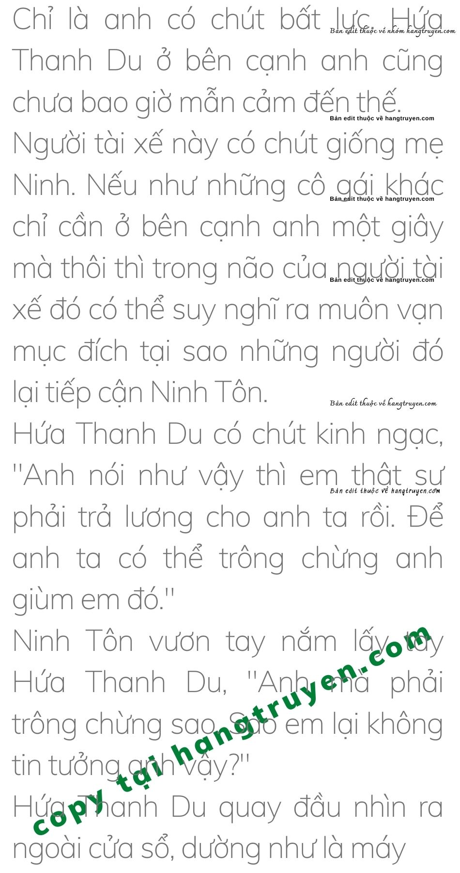 Hứa Thanh Du biết Ninh Tôn muốn nhắc nhở cô về thân phận đã kết hôn của mình. Cô cũng thuận theo đó mà nói: “Anh cũng lo mà nhớ thân nhớ phận của mình đi nhá. Ở bên đoàn phim phải an phận cho em đấy.”