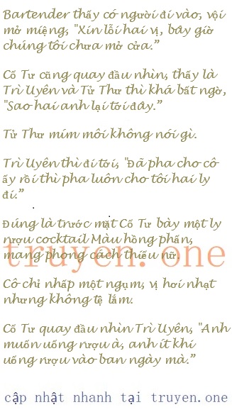 Cảm giác này cứ quanh quẩn khiến anh không được thoải mái.Tử Thư thấy Trì Uyên cho phép, vội nói, “Trong khách sạn có quán bar, chúng ta qua đó đi.”