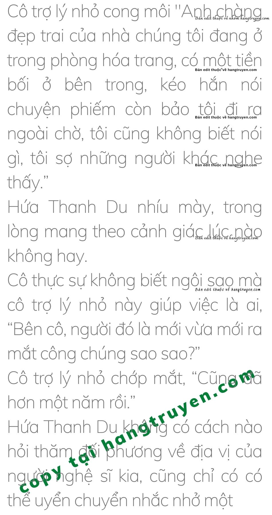 Hứa Thanh Du do dự một chút, đối phương cũng đã (ra mắt công chúng hơn một năm rồi, đối với loại chuyện như này hẳn cũng đã có phòng bị, vì thế cũng chỉ gật gật đầu một cái, “”Ừm, nói cũng đúng.”